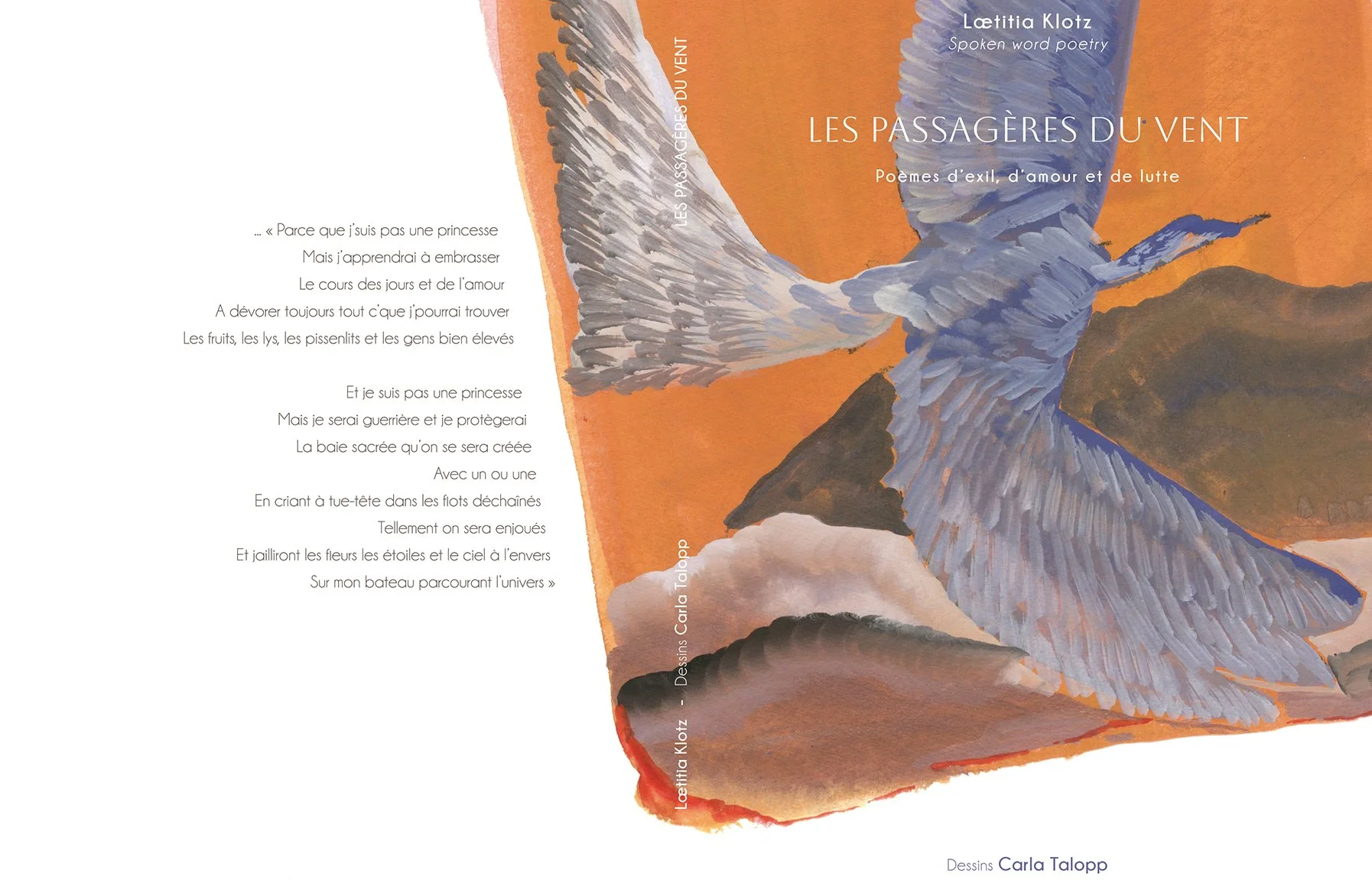 Le recueil Les Passagères du Vent a germé dans le corps de la poétesse pendant de nombreuses lunes. Des murmures de l’exil aux cris pour la liberté, des terres yéménites aux savanes ougandaises en passant par les forêts basques, elle a inlassablement parcouru les trajectoires des femmes. Y explorant les récits des voix tues et méconnues. Dans la lucidité de l’aube, ces récits se métamorphosent et s’élèvent en poèmes déclamés au grand jour. Pour venir finalement s’ancrer dans ce recueil. Les paroles des unes et des autres s’y révèlent en âmes combattantes et bouleversantes. S’entend alors, depuis le ventre des femmes, le chant limpide et éclatant de l’intime. Chant qui les réunit toutes.
